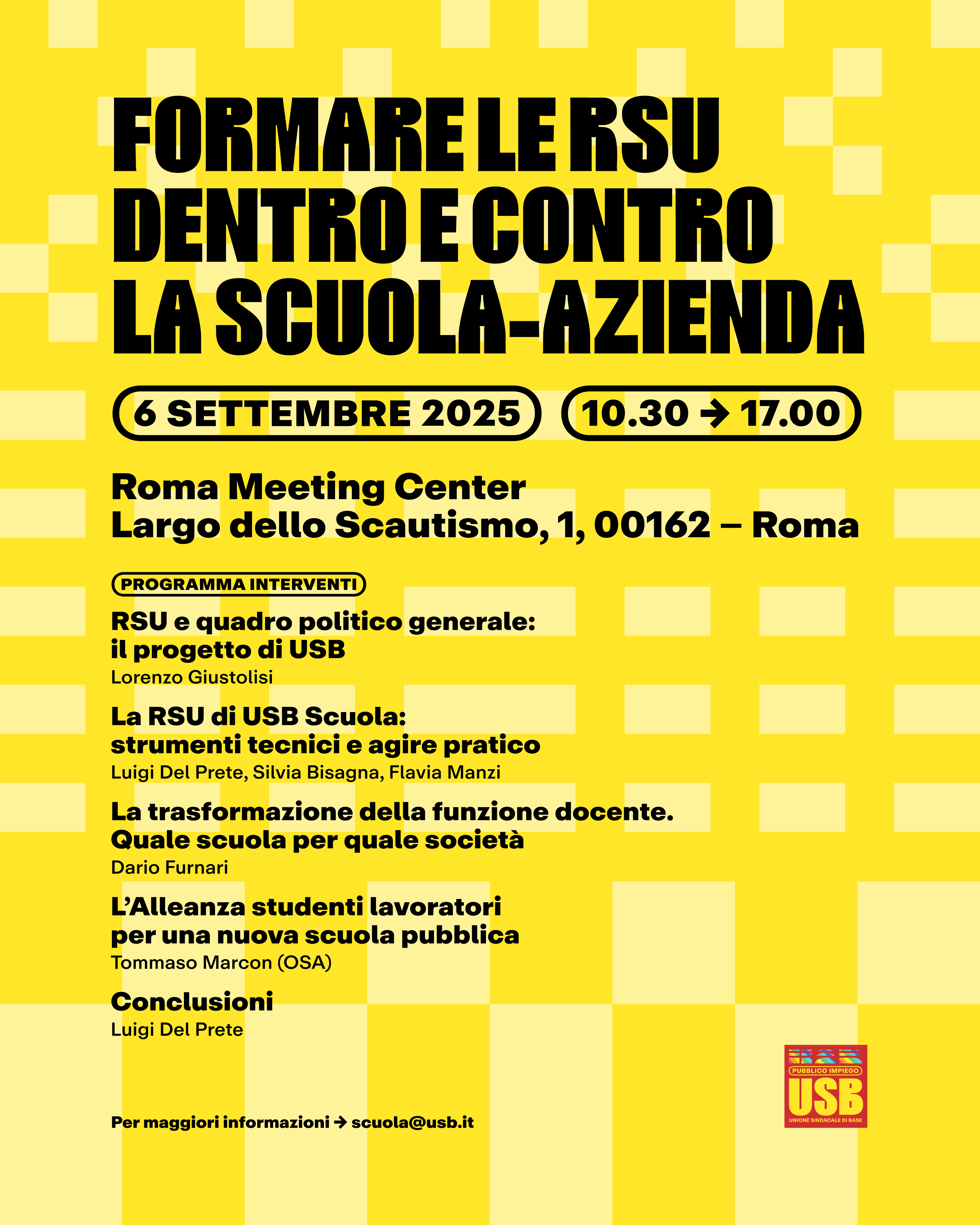 USB Scuola vuole fornire ai propri rappresentanti all’interno delle scuole degli strumenti teorici e pratici per potere affrontare un percorso sindacale complesso come è quello della RSU nella scuola pubblica statale.
